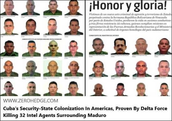 D’abord, il y a bien eu des morts : pour commencer, les sept membres de la garde rapprochée du Président (des Wagner russes, semble-t-il) ; ensuite 32 gardes volontaires cubains, unsoupçonnables par définition (mais tellement odieux à Narco Rubio, si vous saviez !) et enfin un nombre indéfini de civils vénézuéliens dans plusieurs endroits du pays.