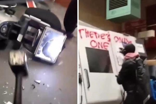 La vidéo mise en ligne par les attaquants montre des machines CNC (à commande numérique), des serveurs et des ordinateurs, fracassés à coups de marteaux par des gens masqués et gantés.